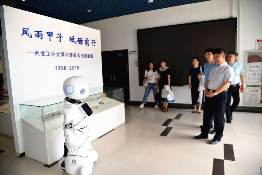 杨晓一行一进学院便受到院史馆导览机器人的热情欢迎,机器人不仅能介绍学院的发展史,更因其智能互动受到大家的喜爱。杨晓给予研发、维护机器人的学生团队充分肯定,希望直播大秀