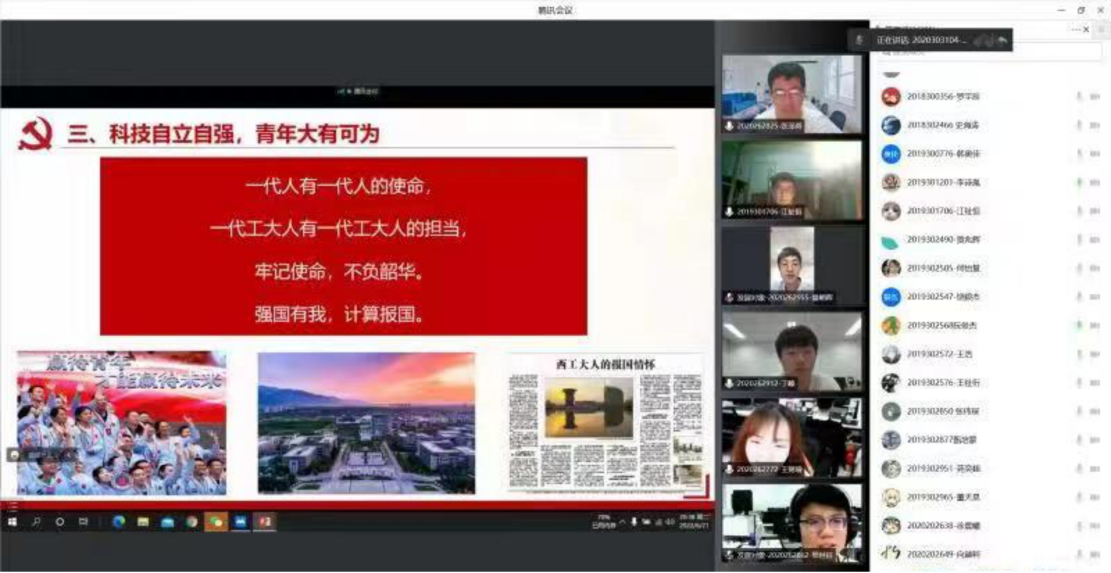 党委书记李春科通过腾讯会议为学院111余名发展对象讲授“百年未有大变局 强国有我新青年“专题党课,引导同学们要心怀“国之大者”,争当栋梁之才。