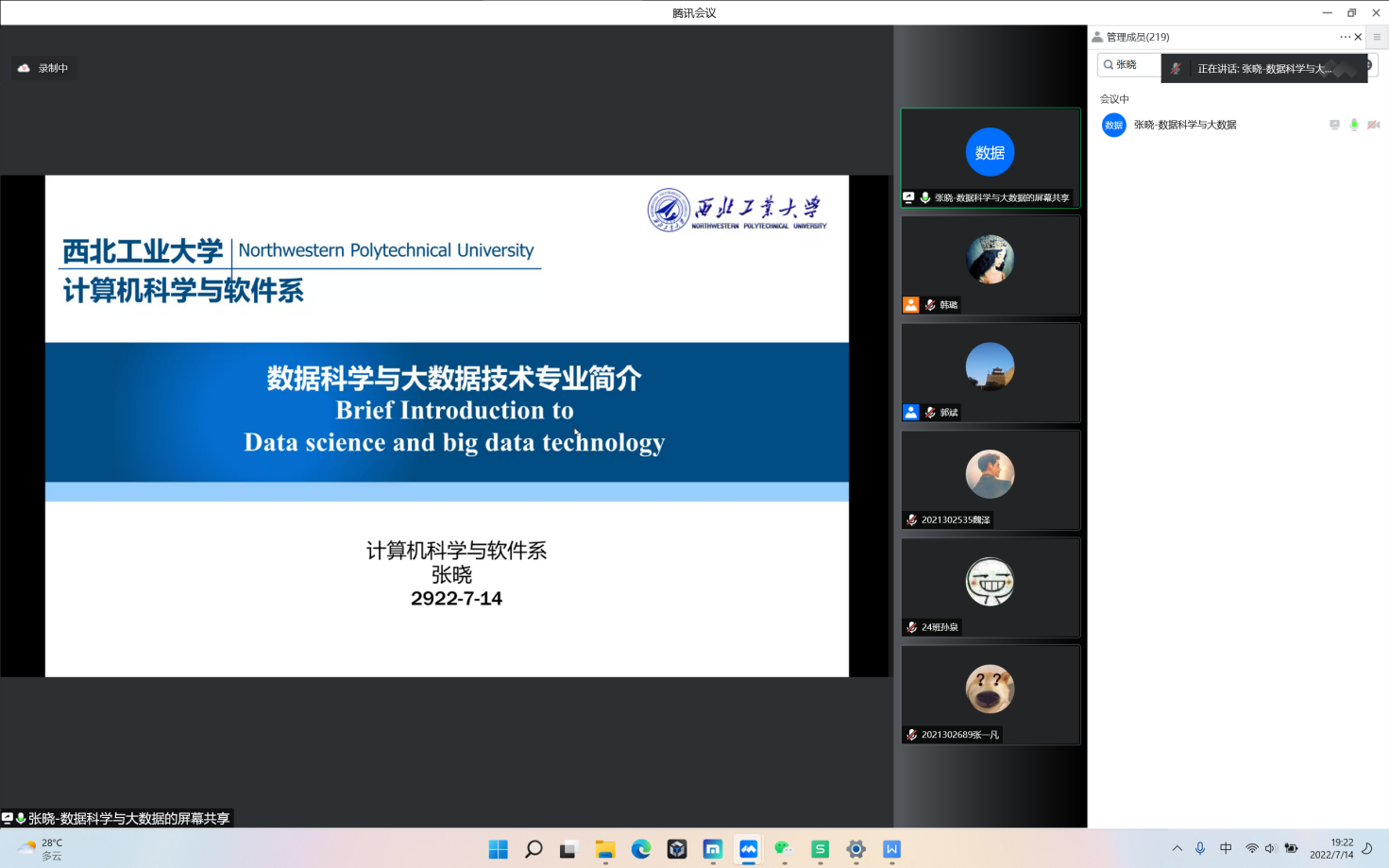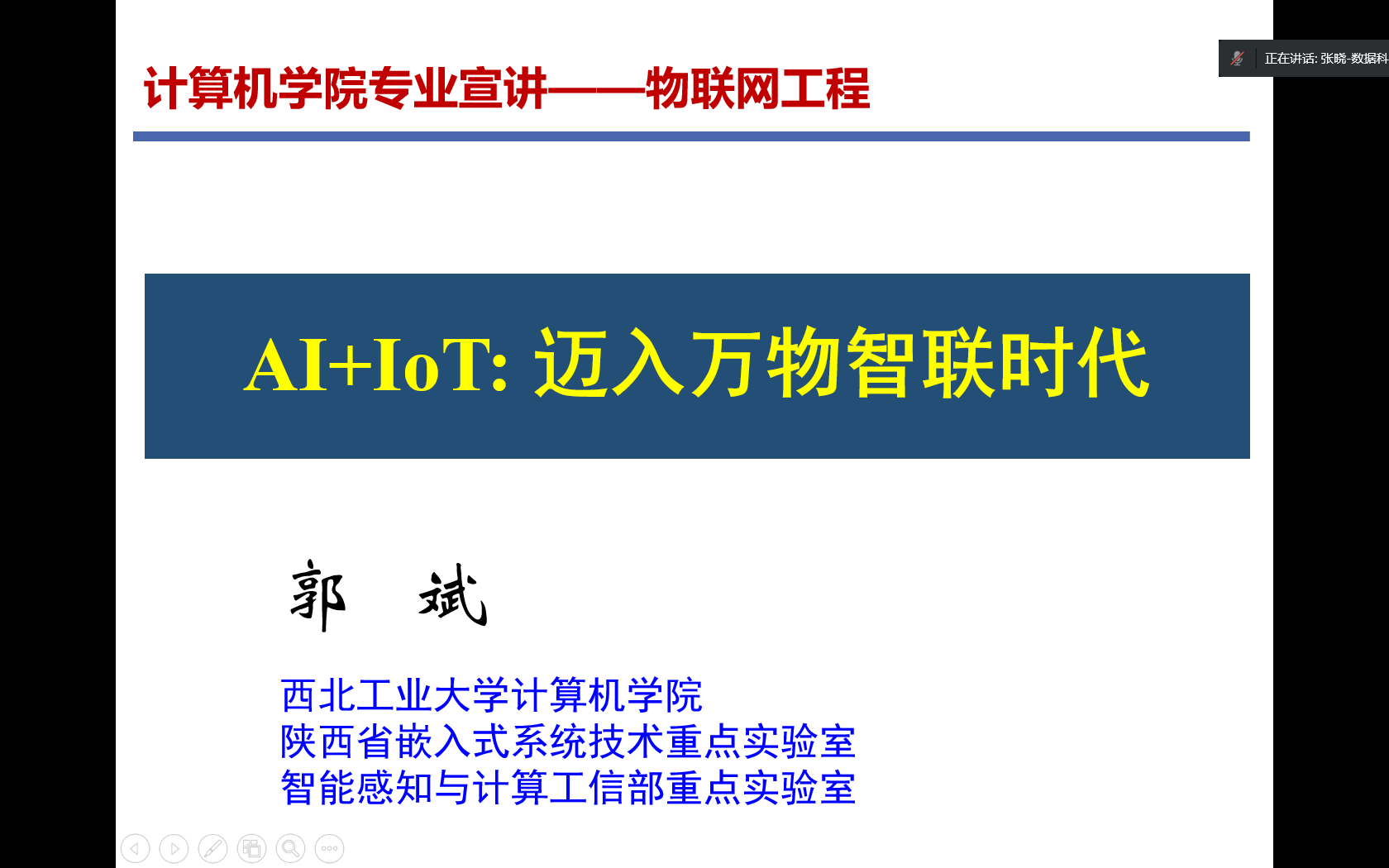 尚学群对此次专业确认概况进行了介绍;后面依次介绍了物联网工程、数据科学与大数据技术、人工智能专业相关情况。各专业负责人从本专业的学科体系、培养模式、专业发展方向等方面详细地介绍了直播大秀