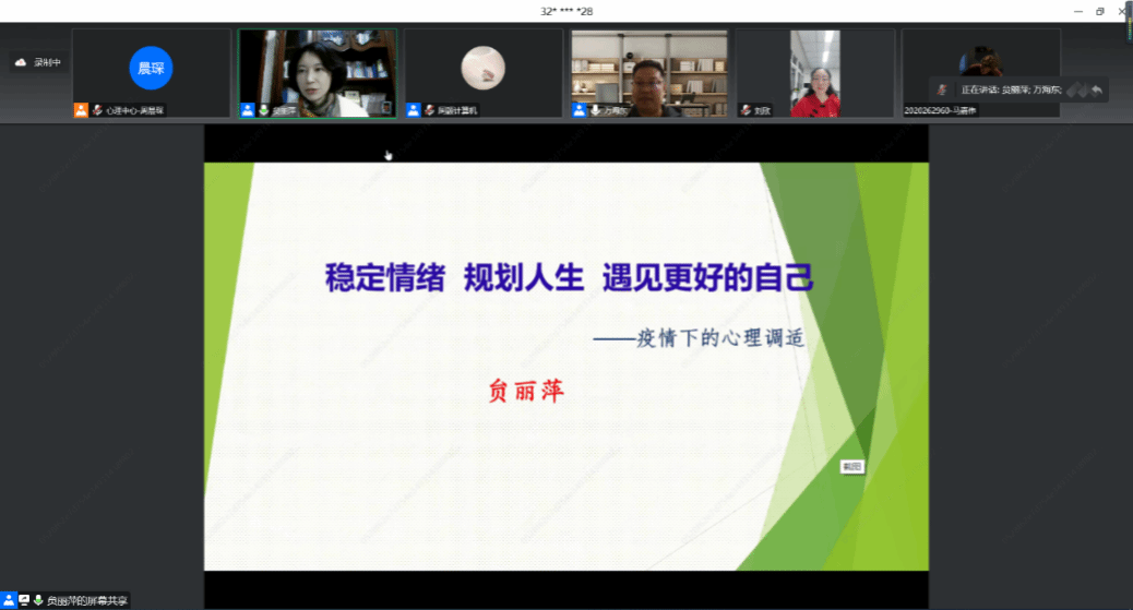 承办的心理健康教育专题报告会顺利举行。本次主题报告主题为:《稳定情绪,规划人生,遇见更好的自己》,报告人为:中国心理学会注册督导师、中国心理卫生协会团体与咨询专业委员会委员、长安大学心理健康教育中心贠丽萍副教授。西北工业大学心理健康教育中心副主任刘欣、周晨琛老师,直播大秀
