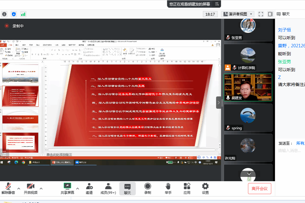 师生近两百人以线上方式参与本次学习,宣讲会由学院党委书记李春科主持。