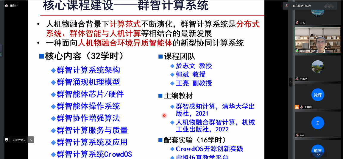 於志文教授首先介绍了虚拟教研室的基本情况,回顾了教研室自成立以来所举办的历次活动,同时针对本次课程建设研讨主题畅谈了群智计算技术的发展历程与未来展望。随后直播大秀