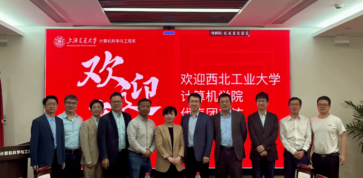 院长尚学群带领班子成员赴上海交通大学调研交流。上海交通大学计算机科学与工程系主任吴帆、党总支书记朱浩瑾、以及有关负责人参加了座谈。