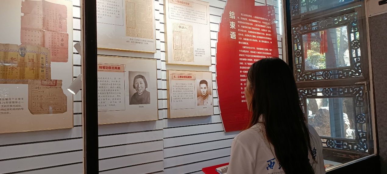 历史是最好的教科书,党史是最好的营养剂。5日清晨,实践队穿街越巷,抵达了位于旌忠巷的江上青烈士史料陈列馆。甫一到达,一座中西合璧的青砖红窗小洋房便跃入了实践队员的眼帘。刘真为大家介绍到:“这里其实是原平民中学旧址,江上青烈士曾走上三尺讲台,在此处任国文教员,同时宣传进步思想,传播革命真理。”