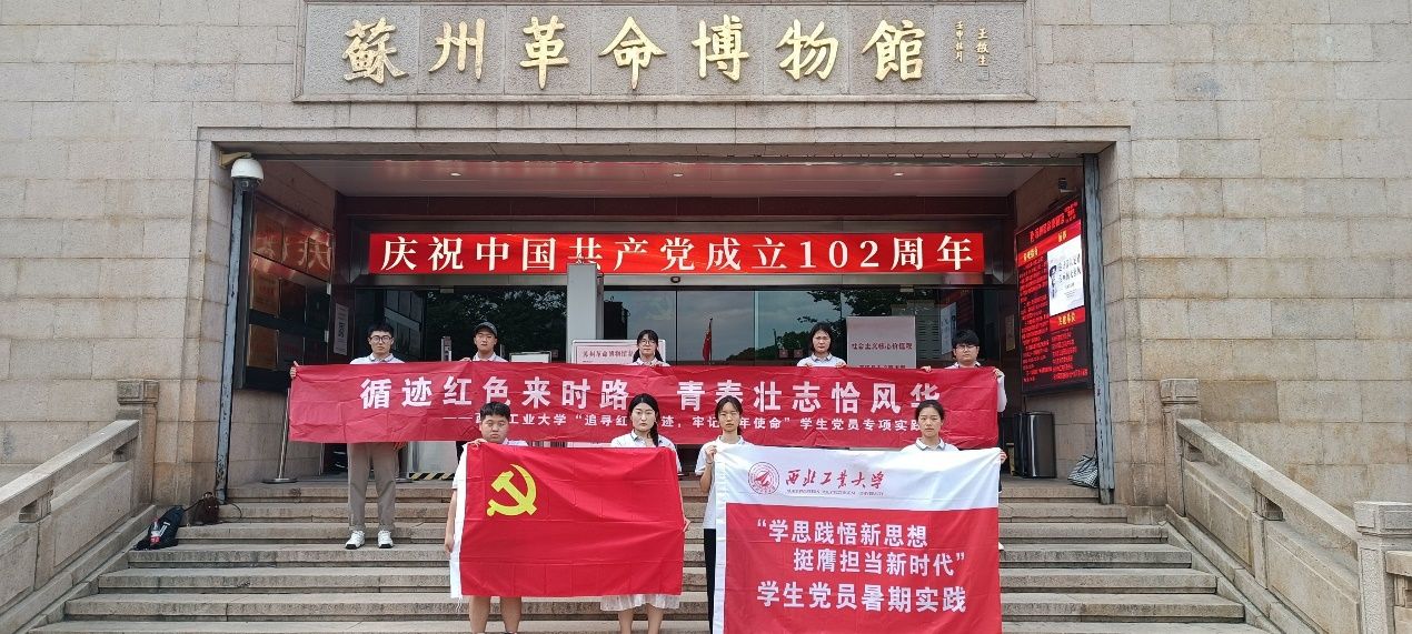 习近平总书记强调,要教育引导全党大力发扬红色传统、传承红色基因,赓续共产党人精神血脉,保持革命者的大无畏奋斗精神。因此,为引导学生党员在学思践悟中砥砺理想信念和初心使命,推动理论知识入脑入心入行,西北工业大学“追寻红色足迹,牢记青年使命”实践队在周颖老师和梁韵基老师带领下,于7月6日至7日前往苏州研学实践。