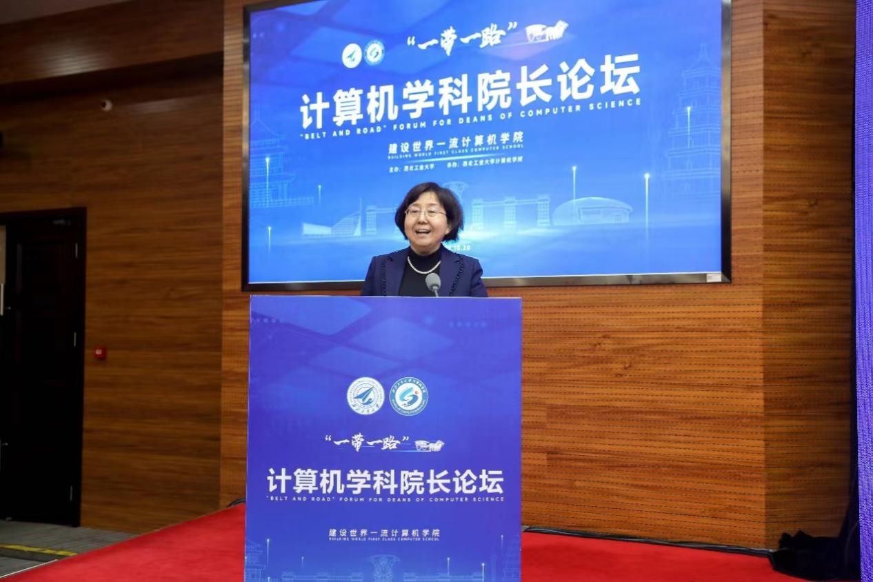 西北工业大学党委常委、副校长张艳宁出席开幕式并致辞,她强调计算机学科的重要性,介绍了西北工业大学和西工大计算机学科的基本情况,表示西工大脉源三支、百余次创造“中国第一”,厚植“总师”型育人文化,坚持“三航”特色,愿与计算机学科同仁一起加强教育合作、推动学科发展,助力“一带一路”建设,贡献西工大力量。
