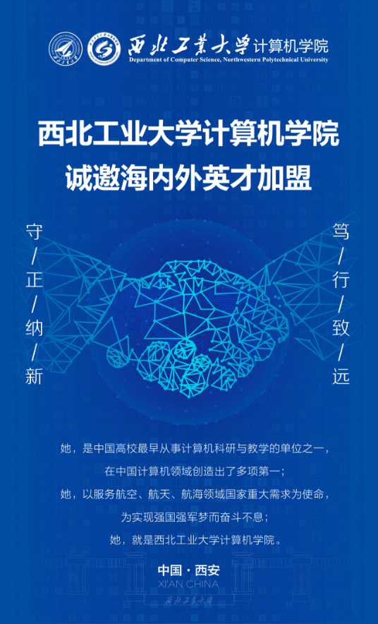 西北工业大学(简称西工大)坐落于陕西西安,是一所以发展航空、航天、航海等领域人才培养和科学研究为特色的多科性、研究型、开放式大学,是国家“双一流”建设高校,隶属于工业和信息化部。1960年被国务院确定为全国重点大学;“七五”“八五”均被国务院列为国家重点建设高校之一;1995年首批进入“211工程”;2001年进入“985工程”;2017年进入“一流大学”建设高校(A类)。“卓越大学联盟”成员高校,“一带一路”航天创新联盟发起高校。连续两次被中共中央、国务院、中央军委联合授予“重大贡献奖”的唯一高校。